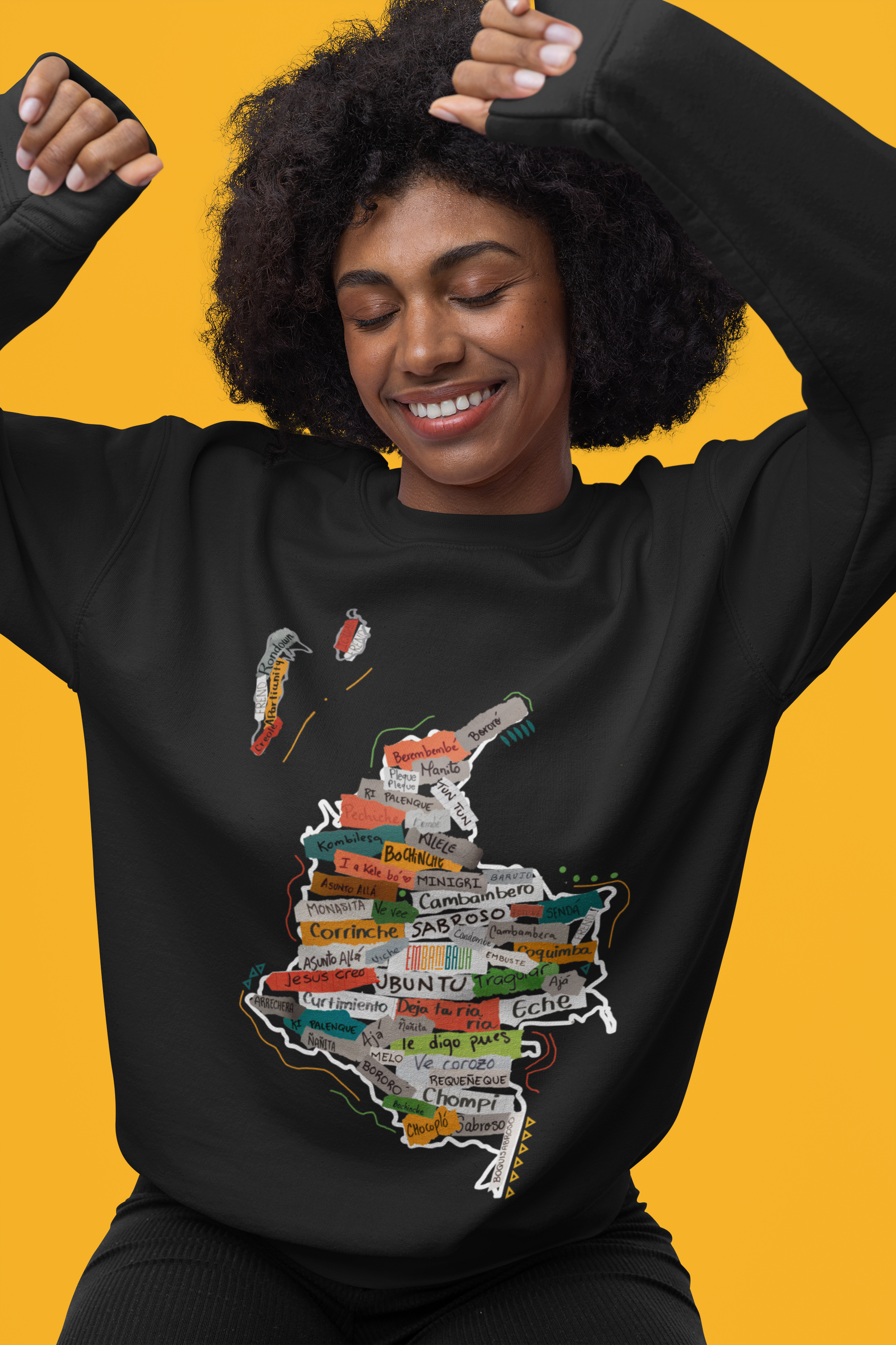 - Diseño exclusivo: Mapa de Colombia con palabras afrodiásporicas