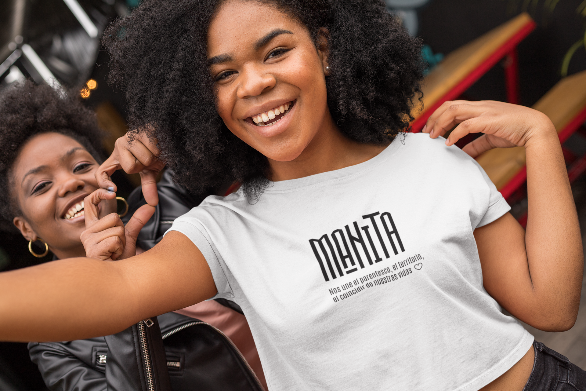 En Embambada, MANITA significa: “te veo, te reconozco”. Esta camiseta no es solo básica: es un manifiesto de conexión, familia y orgullo afro.
